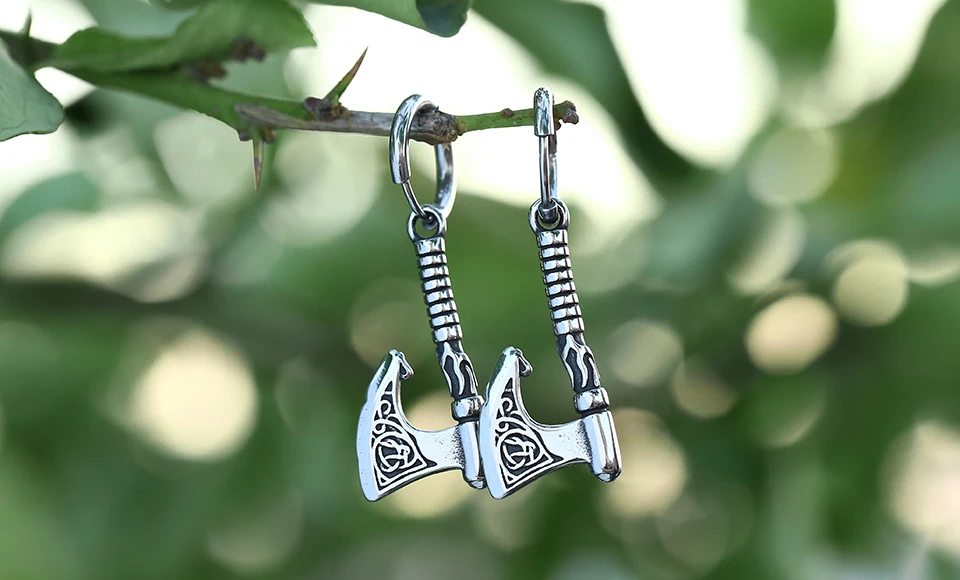 Boucles d'oreilles Hache de Ragnar en acier inoxydable, inspirées par la légende viking. Ces petits bijoux capturent l'esprit de conquête et la force des guerriers nordiques. Parfaites pour ceux qui aiment afficher leur côté aventurier avec style et élégance.